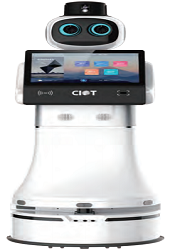 迎宾巡更机器人是一款提供迎宾服务、展示介绍、导引讲解、服务咨询和安保巡逻等功能的服务机器人,可用于生活中的服务行业。迎宾巡更机器人具备自主导航行走、语音交互、人机交互、导览讲解、人脸识别、自主避障、视频通话及监控等功能。迎宾巡更机器人在机械公司门厅设置了A段电梯、B段电梯、卫生间、迎宾点、充电点,机器人在听到唤醒词后,机器人将自主运行到目标点。