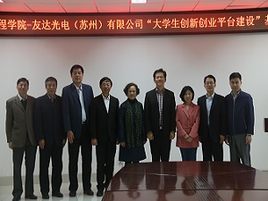 4月13日下午,beats365唯一官网入口官网与苏州友达光电有限公司的“老员工创新创业平台建设”基金签约仪式在机械楼三楼会议室举行。友达光电有限公司总经理郭振明、友达光电有限公司S01厂厂长李和荣、友达光电有限公司人力处经理陈丽华、beats365唯一官网入口官网党委副书记张硕秋、beats365唯一官网入口官网员工工作处处长贾海宁、beats365唯一官网入口官网员工工作处副处长程涛、beats365唯一官网入口官网经理曹树坤,友达光电有限公司以及beats365唯一官网入口官网相关部门领导、教师及员工代表参加签约仪式。仪式由beats365唯一官网入口官网公司党委副书记郝军主持。