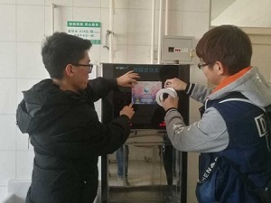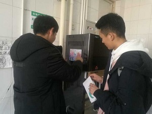 12月22日中午,志愿者们集合完毕,分成两组。在一番认真准备过后,他们分别赶往第30号和第33号员工公寓。他们首先确认可能存在安全隐患的地面,并在其周围张贴标语。在这次爱心活动中,志愿者们负责粘贴了先前悉心准备的宣传标语版,标语中透露着对同学们的关爱。因饮水机溅水使路面结冰,所以志愿者们在饮水机上也张贴了标语,并对饮水机进行了简要的维修和处理。而所随的记者团工作人员也将这一温馨的画面用相机记录了下来,让我们共同留住了这一美好的瞬间。