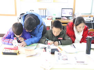 上午九点,爱心服务队成员抵达饮虎池社区并开始了辅导活动。小朋友们活泼好动,略显贪玩。爱心服务队成员用自己的智慧和耐心很快化解了难题,使小朋友们安静下来并进入了学习状态。爱心服务队成员分成两组,一组进行数学辅导,一组进行语文辅导。对小朋友们遇到的难题和提出的疑问,志愿者们耐心又风趣幽默的讲解,让小朋友们很快的认识到问题所在。偶尔有小朋友调皮贪玩,志愿者们轻轻的摸摸他们的头,温和的进行劝说和教导,小朋友立刻又进入了学习状态。小朋友们在志愿者的辅导下很快完成了作业,志愿者们认真的检查了孩子们的作业,确认没有错误后,和孩子们开心的做起了游戏,大家一起唱歌,猜谜语,其乐融融。