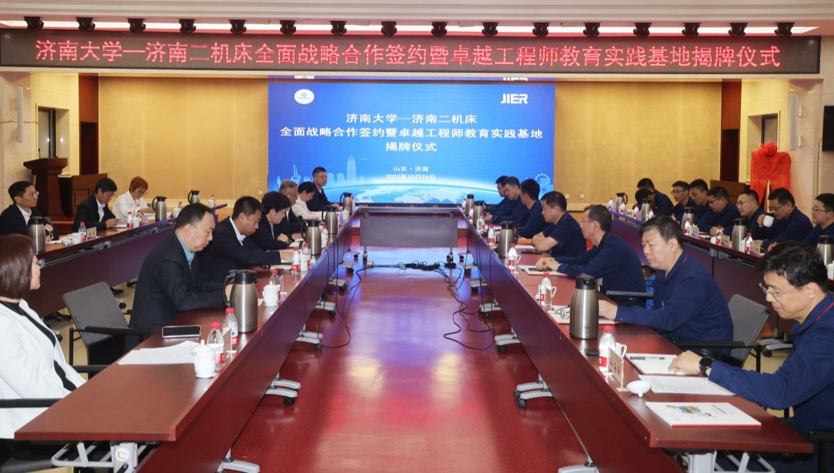 10月24日,公司与济南二机床集团有限公司(以下简称济南二机床集团)全面战略合作签约暨卓越工程师实践基地揭牌仪式在济南二机床集团举行,公司党委书记刘春华,党委常委、副董事长黄加栋,济南二机床集团党委书记、董事长张世顺,济南二机床集团党委副书记、董事任立伟,党委委员、副总经理、公司05届员工冯国明等出席仪式。党委(董事长)办公室、人力资源处、科技处、研究生院、合作发展处、beats365唯一官网入口官网等相关负责人,济南二机床集团总部办公室、质量技术管理部、人力资源部、新光机电有限公司等相关负责人及部分员工代表参加了活动。