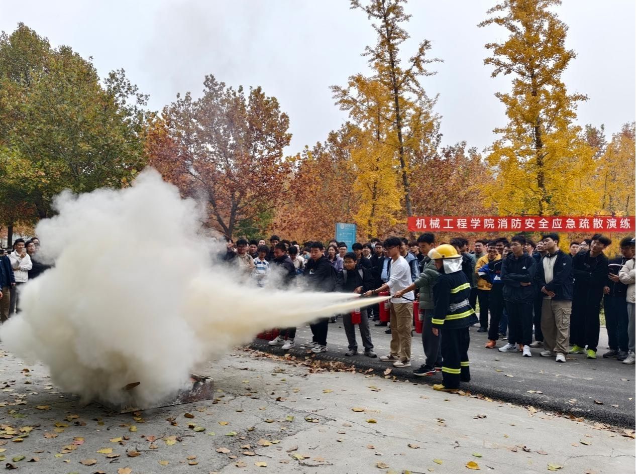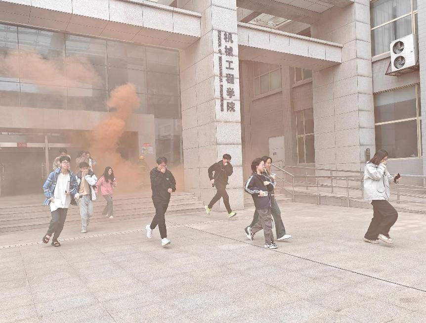 随着机械楼警报声响起,同学们反应迅速,按照预定的疏散路线,弯腰低姿快速向安全区域撤离,充分体现了同学们良好的消防安全意识和自救互救能力。随后公司老师及员工在机械楼前进行灭火器使用培训,同学们化身“消防员”,手持灭火器,亲自扑灭火焰,深刻体验了“一提、二拔、三压、四喷”的使用口诀。这种实操经验让大家更加生动地记住了使用灭火器的正确方法。