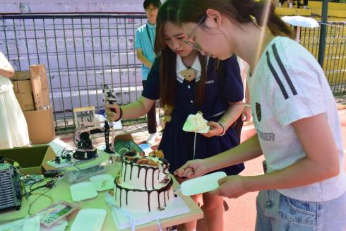 公司报到点以“智造未来”为主题,设置创意打卡点,新生和家长纷纷驻足,按下快门,镜头定格在新生的第一张校园合影。