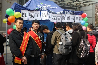 为了培养同学们的读书兴趣,提高同学们的个人素养,并进一步推进校园文化建设,公司青年志愿者协会于11月28日在八食广场举办了“图书漂流 让心相随”读书交流活动。