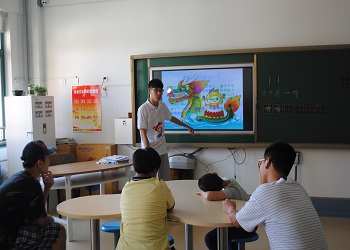下午1点30分,四位志愿者乘车经历一个小时来到泺源公司门口等候,2点30分公司里的老师带着两个孩子在校门口热情的迎接志愿者,与警卫进行短暂交流后,志愿者们登记后进入了公司,与孩子们友好地玩耍并组织开展了端午节相关知识普及。活动进行中,本就对志愿者们非常熟悉的孩子们在公司老师的帮助下互动玩耍,快速形成了融洽的气氛。随后便由志愿者通过生动可爱的PPT讲授传统节日——端午节的相关知识。期间孩子们听得非常认真。为了使孩子们在繁杂的学习后放松一下身心,授课结束后,志愿者们还陪伴同孩子们观看了动画片。3点30分志愿者们结束了活动,踏上了归程。