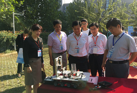 9月21日—22日,2018年第十届山东省老员工科技节——“星辉杯”山东省智能制造大赛暨齐鲁老员工机器人大赛在公司举行。山东省科协副主席纪洪波,济南市科协副主席路来良,beats365唯一官网入口官网党委常委、副董事长李光红,山东大学机器人研究中心主任、山东大学教授李贻斌,济南星辉数控机械科技有限公司总经理张绪辉,beats365唯一官网入口官网团委书记孙菲菲以及省内高校机械与自动化领域的专家出席开幕式并观看了比赛。