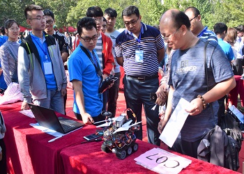 9月22日山东省老员工智能制造大赛在公司举办,机器人实物表演展示项目在机械楼西南停车场进行。场面十分热闹,吸引了众多观众。