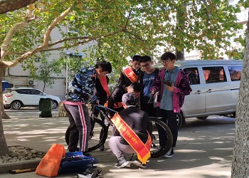 为了方便同学们的日常出行,发扬“助人、友爱、奉献、坚持”的志愿精神,公司青年志愿者协会义务修车队于十月二十三日在校医院西侧路边举行义务修车活动。