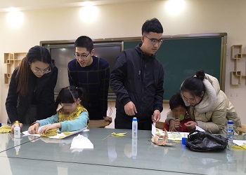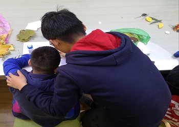 为使活动顺利展开,志愿者们利用上午的课外时间收集了各种各样的树叶。孩子们对志愿者们带来的树叶充满着强烈好奇,也表现出强烈的动手欲。活动伊始,志愿者们为孩子们讲解了树叶画的基本粘贴方法与技巧。由于泺源公司的孩子们相对于普通孩子接受能力差一些,所以在开始作画的时候,出现了很多困难。但在志愿者们的耐心引导和主动帮助下,孩子们慢慢掌握了创作方法。志愿活动过程中,志愿者们与小朋友配合默契,小朋友们积极参与。创作最后,志愿者们同小朋友一起完成了一幅幅精彩的树叶画,小朋友们快乐其中。