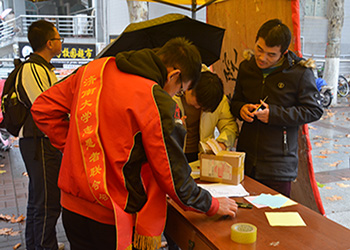 虽然活动的当天下着小雨,志愿者们的热情却不减丝毫。活动期间志愿者们分成两队。一队为残疾人朋友准备自己的爱心小礼物,另一队则积极组织爱心募捐。小雨淅淅沥沥地下着,志愿者们的工作并没有因此受到干扰。路过的员工看见志愿者们在为残疾人准备小礼物,也毫不犹豫地参与进来。志愿者热情欢迎,耐心地教同学们折纸。募捐的地方也是人潮涌动,同学们将不用的书籍等物品捐献出来,用简单的纸鹤承载对残疾人朋友的关心,让爱心通过志愿者们传递给每一位残疾人朋友。