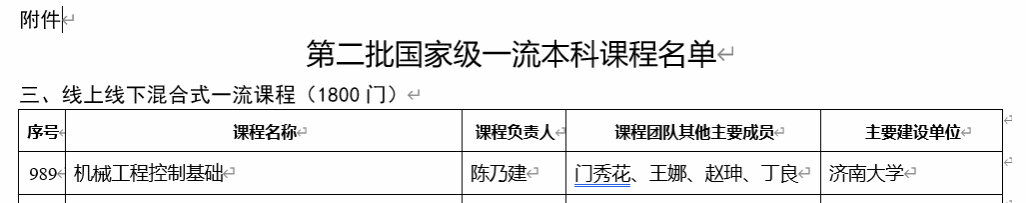 在教育部发布的第二批国家级一流本科课程认定结果的公示中,公司《机械工程控制基础》课程认定为第二批国家级一流本科课程。