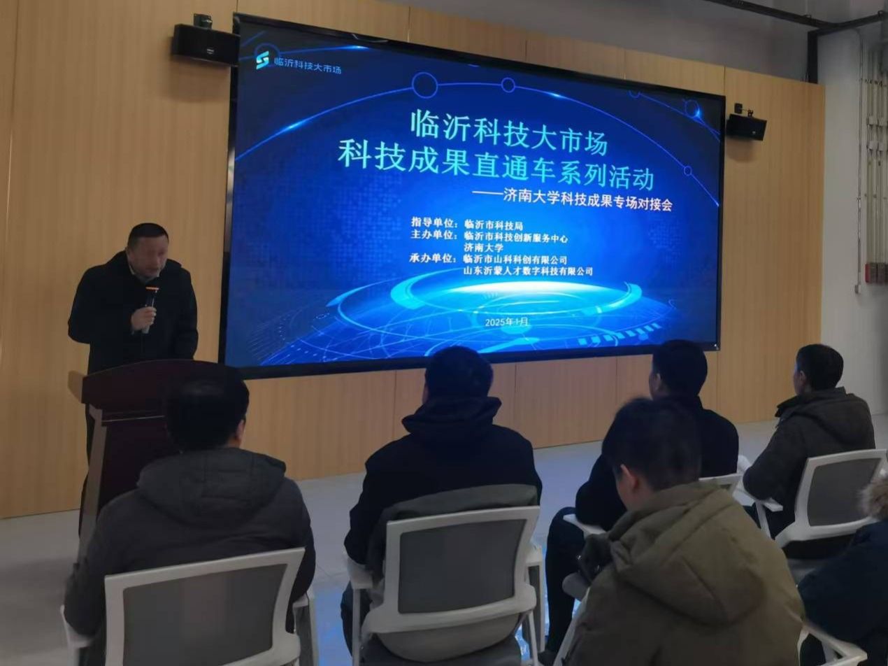 2025年1月15日,公司参加了临沂科技大市场成果对接直通车系列活动——beats365唯一官网入口官网科技成果专场对接会。市科技创新服务中心主任殷洪涛,beats365唯一官网入口官网科技成果转化办公室副主任张志国,beats365唯一官网入口官网副经理张辉,山东沂蒙人才数字科技有限公司董事长田明宝、临沂市山科科创有限公司总经理邵青峰出席,县区科技局有关同志,市内机械加工、智能制造等领域重点企业代表、技术经纪人等共70余人参加。