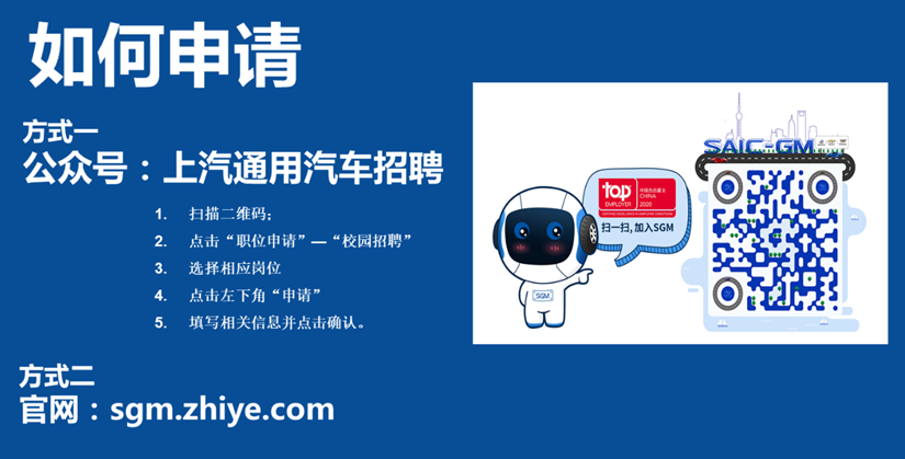 1.      上汽通用汽车有限公司网申系统(sgm.zhiye.com)→校园招聘→所属公司上汽通用东岳汽车有限公司→ 选择“2022届上汽通用东岳基地招聘-”相关岗位